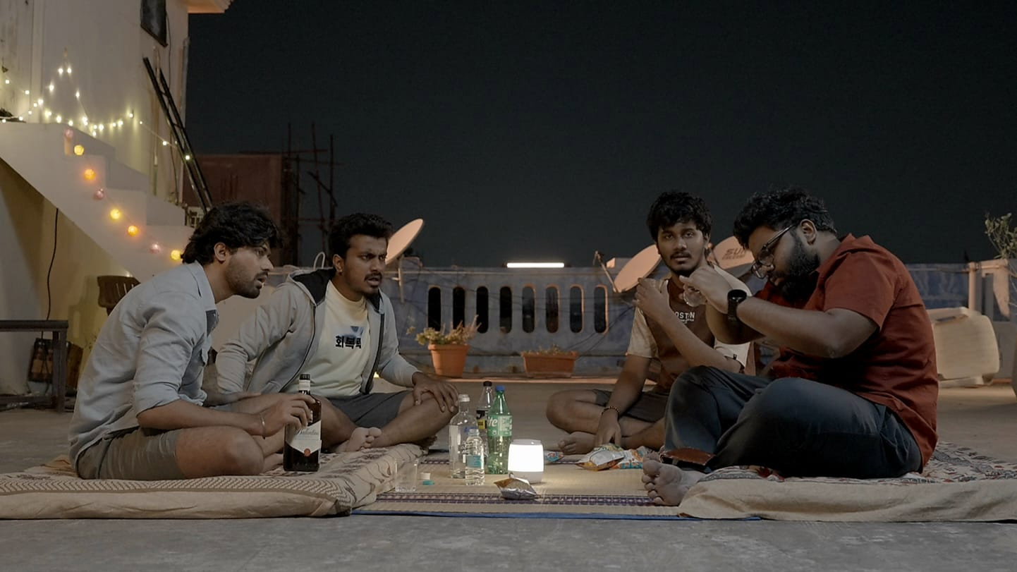 Four friends gather for drinks. As the night deepens, reason quietly slips out of the door, and drunken madness takes its seat at the head of the table.